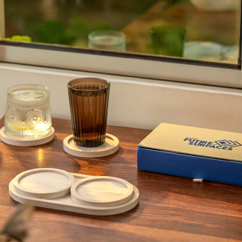 Inspired by the warm, comforting tones of a freshly brewed cappuccino, Cappuccino Veins Coasters by Elexra is a beautifully handcrafted set of four coasters with a matching tray — an ode to modern simplicity and thoughtful design. The flowing wave-like patterns in soft, creamy browns evoke the calm of quiet mornings and the elegance of everyday rituals.